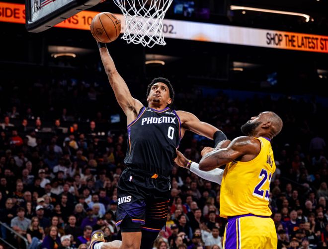 数据不会说谎。本赛季太阳进攻效率116.0联盟第12,防守效率113.5联盟第8,净效率值+2.5联盟第9。不算特别突出,但真没有短板,而且场均限制对手得分只有112.3分,联盟第6!有几个数据体现这支太阳的特质,首先场均10.4次抢断联盟第1,利用对手失误得分21.8分联盟第2,场均12.9个进攻篮板联盟第5!休赛期买断了比尔的1亿美元剩余合同,送走杜兰特,换来了布鲁克斯+杰伦格林+首轮签选中马鲁阿奇,杰伦格林长时间养伤,马鲁阿奇和杨瀚森处境相似,球队小透明,那就相当于狄龙布鲁克斯平替杜兰特,球队就起飞了?